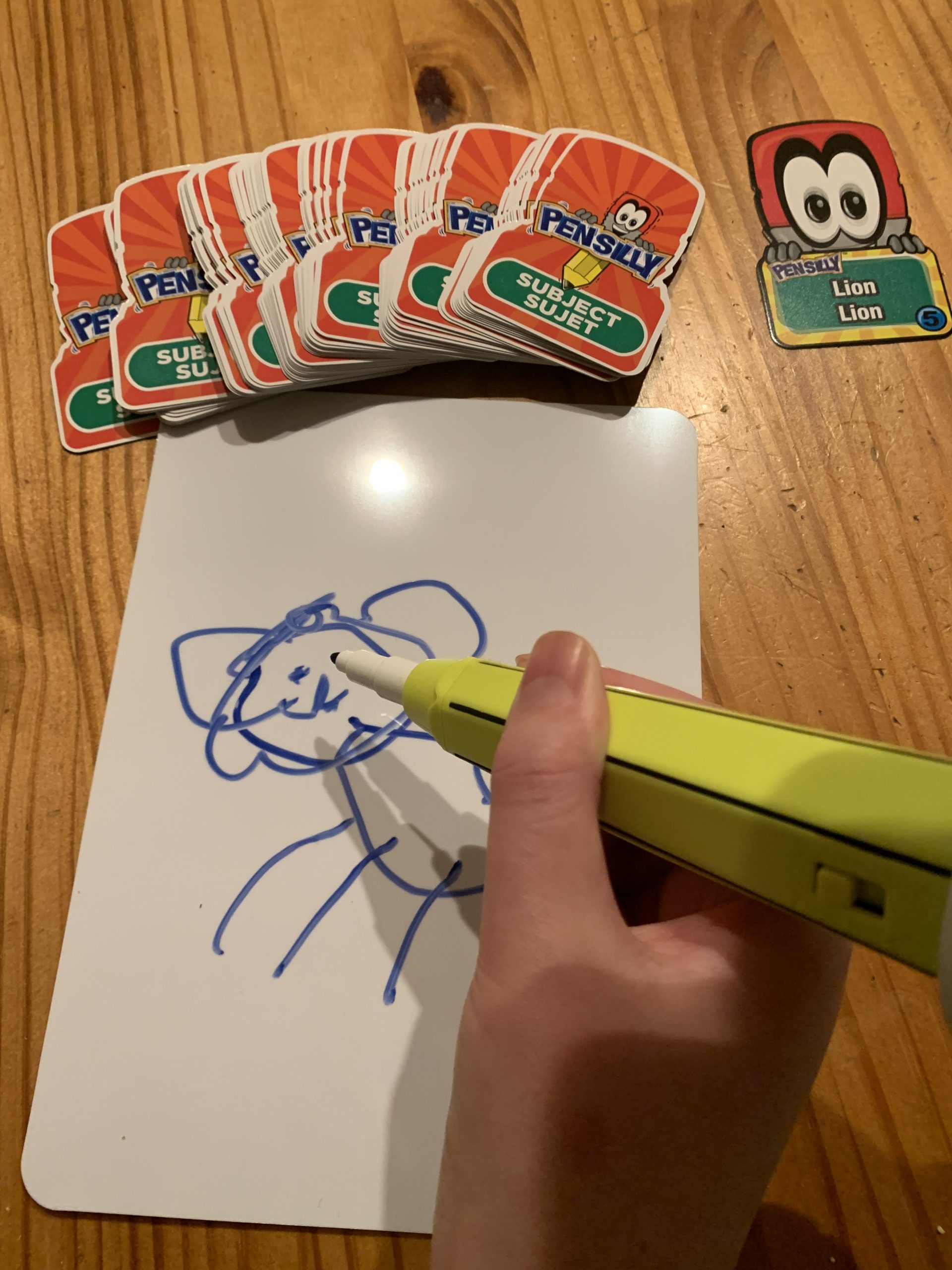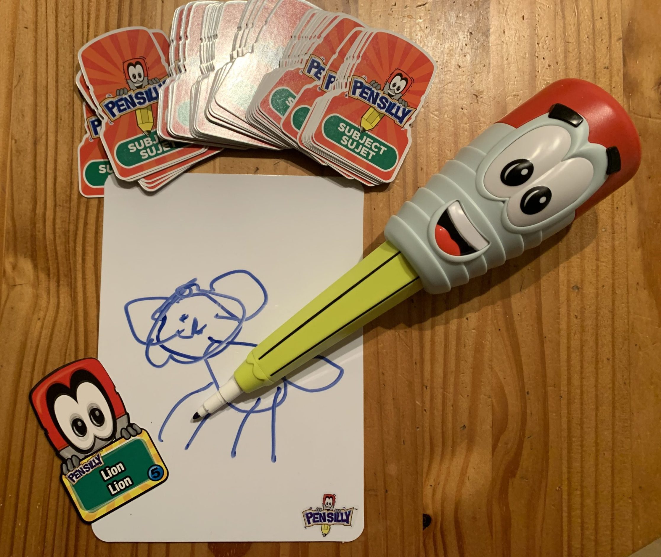 - This pen is silly! It shakes and wiggles as you are trying to draw clues for your friends. The trick is to guess the clues before the timer runs out. There are over 5,500 clue combinations with 2 Levels of play so you can wiggle and draw through winter and longer.