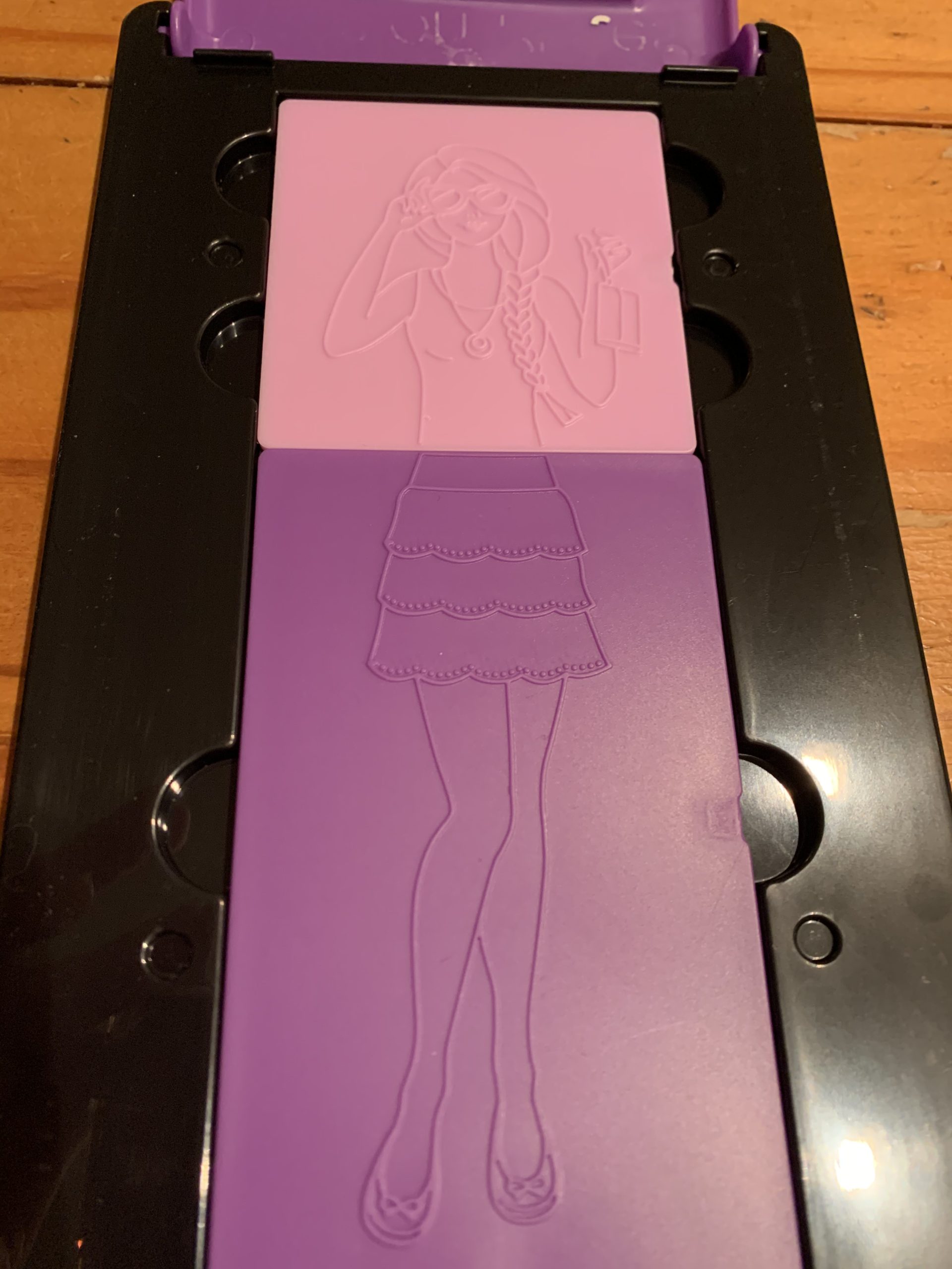 - A little nostalgia for Mom! I remember playing with Fashion Plates for hours as a young girl. The updated version is all that I remember and more. From the sleek and chic purple carrying case to the newer sleek plates this update on an old favorite is dressed to impress! Includes a fashion carrying case, 1 folio idea guide, 15 fashion plages, 20 sheets of paper, 8 colored pencils, 2 rubbing crayons with holder and a drawing tablet.
