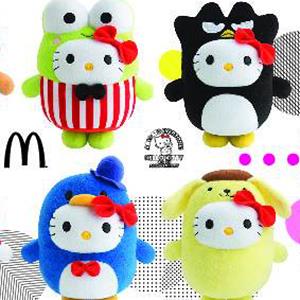 The set includes 6 plush “Kitties” dressed as other popular Sanrio characters. There is a “Penguin Kitty” named Tuxedo Sam and even a “My Melody Kitty”! The set costs $64 U.S. and comes with 6 extra value meal vouchers.